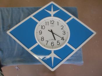 学校には必ず取り付けてある壁掛け時計に飾りつけ・細工したものです。