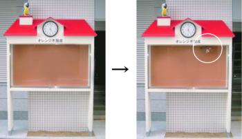 洗濯物が干せずに困っている、からくり時計製作担当杉本です ![]() 今日はからくり看板・動く看板を紹介したいと思います ![]() 画像は、不動産屋さんの掲示板です。 じつはこの掲示板には、ちょっとしたからくりがあるんです!!! 定時になると画像右上の白丸部分にリスが登場するんですよ〜 ![]()